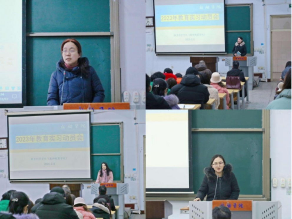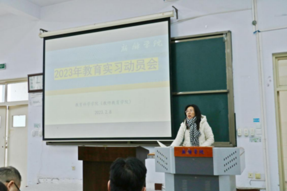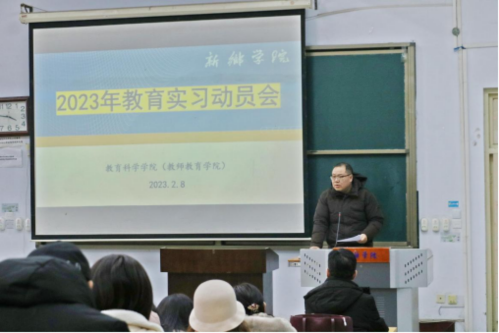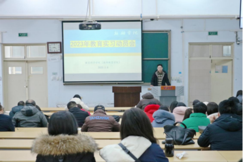 2023年2月8日下午,教育科学学院在A11-0225教室召开了2023年教育实习动员会。教育科学学院党委书记吕明哲、院长牛长海、副院长何冬丽及全体教育实习指导教师参加了会议。