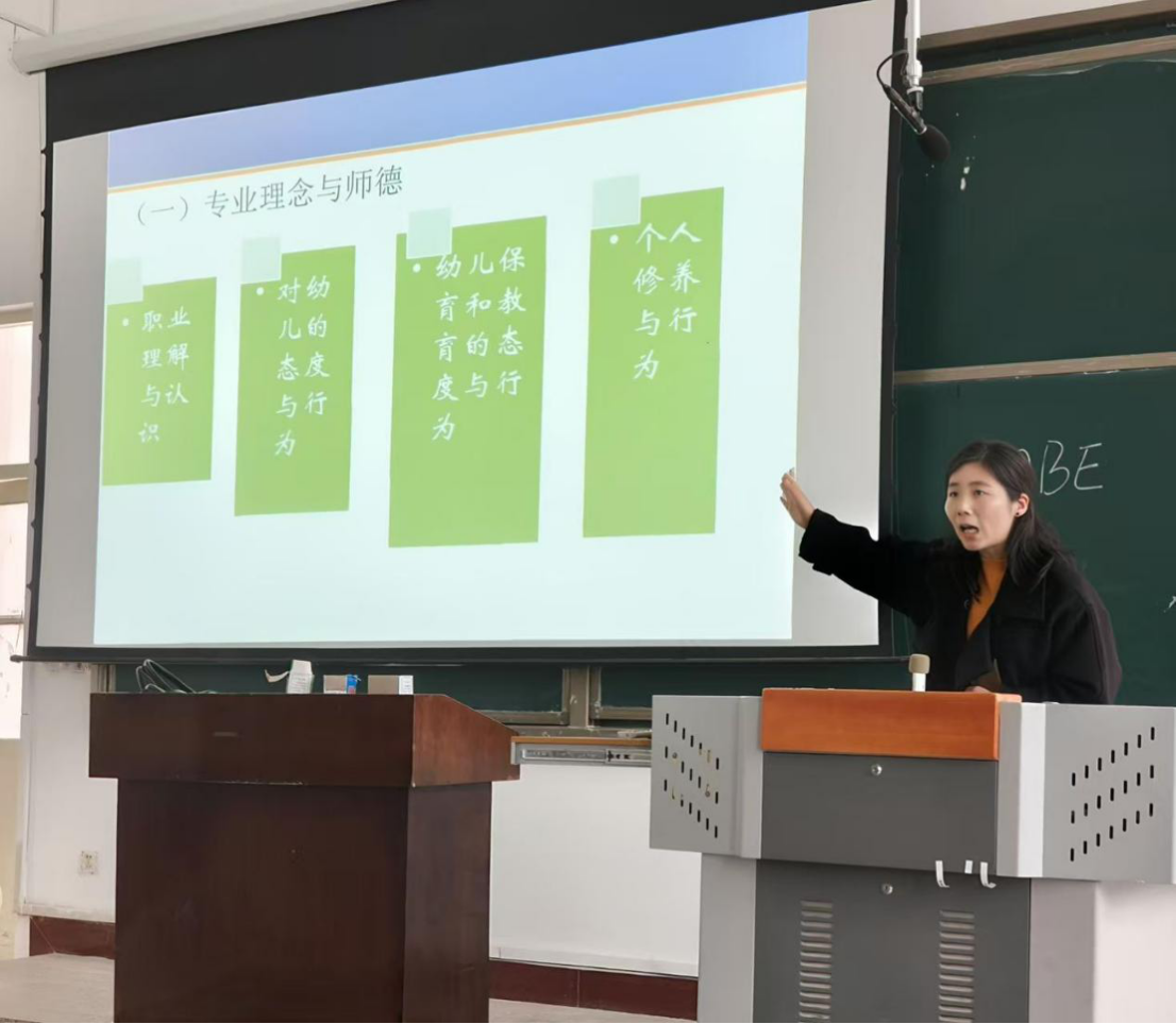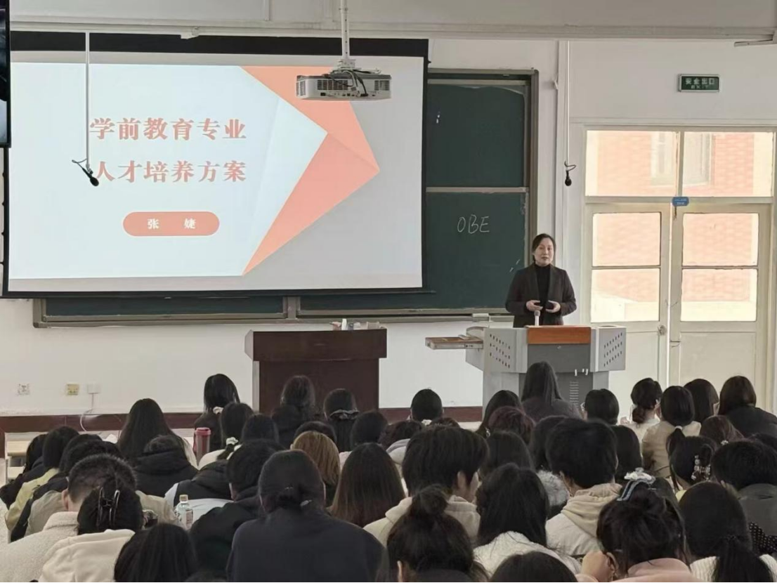 培训中,刘春梅讲解了专业认证的相关知识,解答了学生的问题,并对学生的学业规划进行了指导。邵培莉以“一践行,三学会”为主题,讲解了幼儿园教师专业标准。接着副院长张婕从专业定位、培养目标、培养要求、核心课程、毕业要求和教学计划表六个方面讲解了学前教育专业人才培养方案。最后副书记李彦对会议内容进行总结,引导同学们站在时代发展的高度,正确认识并展望学前教育专业的广阔前景,鼓励大家将今日所学转化为明日所用的实践能力。