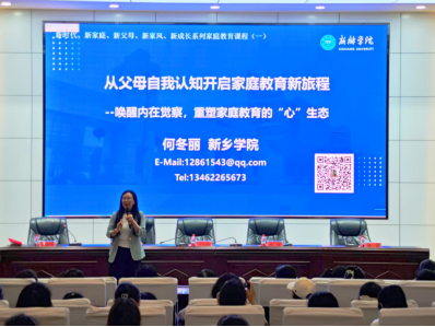 5月14日,新乡学院教育科学学院“家校社”协同育人项目首期主题讲座在新乡学院附属中学顺利开展。新乡学院教育科学学院何冬丽副教授应邀以《新时代、新父母——家庭教育从父母了解自己开始》为主题,面向新乡学院附属中学300余名学生家长展开了一场别开生面的家庭教育讲座。