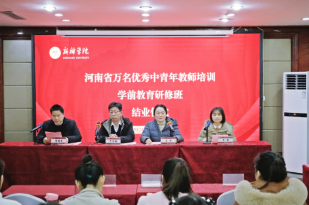 1月17日,河南省万名优秀中青年教师(学前教育)研修班集中阶段培训圆满结束,在项目组的精心筹备下,结业仪式在九州宾馆举行。教育科学学院(教师教育学院)院长、中小学教师校长研修院执行院长牛长海教授,中小学教师校长研修院副院长宋华、陈锡林,项目负责人、教育科学学院副院长张婕和项目管理团队参加了结业仪式。仪式由张婕主持。