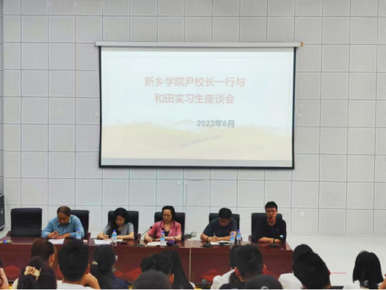 为加强我校师范生实习实训指导工作,了解师范生实习工作开展情况,表达学校对实习支教学生的关怀,校长尹新明带领校长办公室、校语言文字推广办公室、教务处、及教育科学学院相关人员到和田市看望我校在和田市中小学实习支教的57名教育科学学院学生,并与我校在和田地区工作的校友进行了亲切座谈。