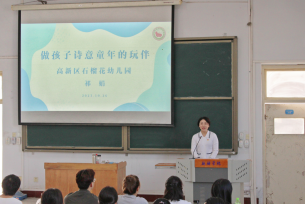 祁娟从幼儿园教师角色要求与定位入手,从自身在幼儿园工作21年的教育教学经验及感悟出发,分别从如何做孩子诗意童年的玩伴;致力做学前教育的躬行人;增强学前教育教师职业的自尊和自豪感;明确学前教师教育的生活化、特殊化、幸福感和不可替代性几个方面与同学们进行了深入的交流。