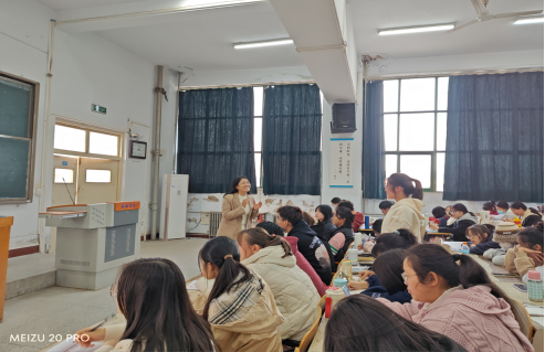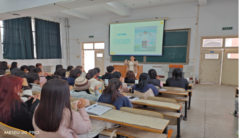 张建英老师以一首活跃的拍手操调动了学生听课的积极性,从分享自身的教师成长之路谈起,分析了共走教师路上存在的4种不同层级关系,探讨了教师职业中不同的情境下可能面对的合作关系、竞争关系、破裂关系。从关注学生谈起,与新生共同探究了如何在教学中更好的关注学生成长问题。最后,张老师带领同学们一起朗读了“心育心语”,提升了学生们的从教意愿。