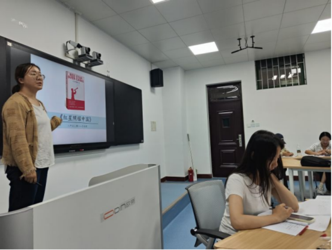 2023年9月19日,国培计划(2023)——林州初中语文骨干教师培训学员在班主任王梦老师以及实验实训中心杨捷文老师的带领下,参观了教育科学学院的心理与教师教育实验实训中心。杨捷文对中心的各个实验室进行了介绍。