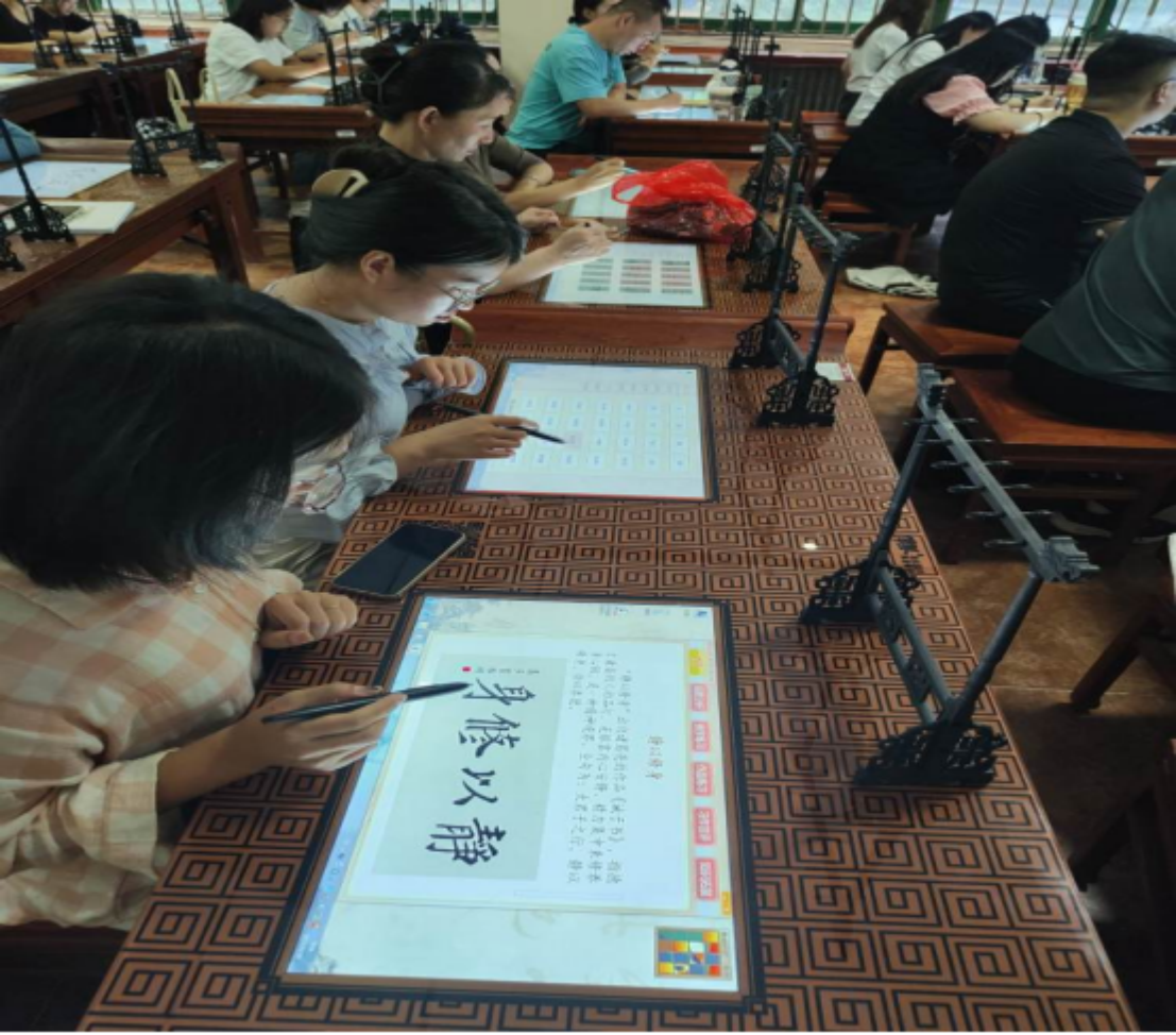 图二:学员们在交互式电子书法教室体验数字化书法教学系统