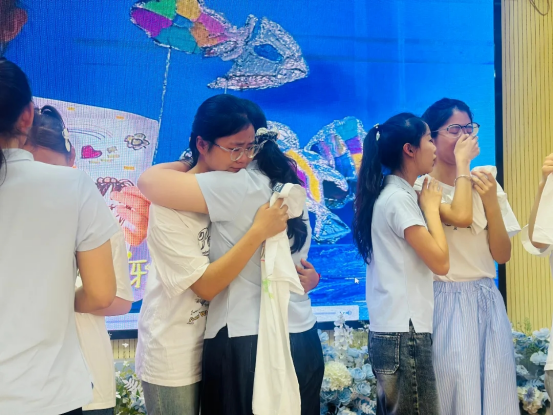 为激励先进,幼儿园为表现突出的实习生颁发了“优秀实习生”荣誉证书。教育科学学院副院长何冬丽在寄语中勉励同学们:“希望你们永远保持对教育的热爱,在今后的学习和工作中继续提升自己,成为有爱心、有耐心、有专业能力的幼教工作者。”欢送会最后,全体师生合影留念,并在签名墙上留下祝福话语。许多实习生与孩子、老师相拥告别,眼中闪烁着不舍的泪光。