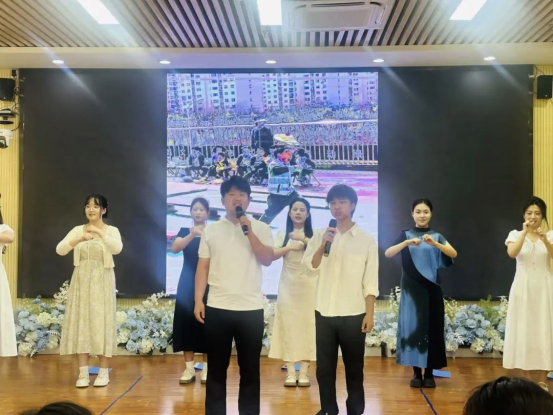 实习生向幼儿园全体指导教师献上鲜花和手写感谢卡,以表达对教师悉心指导的诚挚谢意。幼儿园的小朋友们也带来了精心准备的表演。童趣盎然的舞蹈、清脆悦耳的合唱,让现场充满欢声笑语。孩子们还为实习生送上亲手绘制的手工礼物,场面温馨感人。