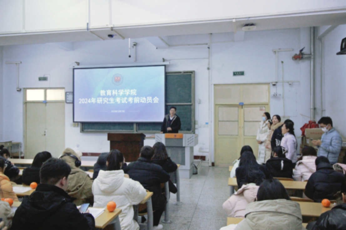 为支持考研学子积极备考,给学生加油鼓劲、增强信心,教育科学学院于12月19日下午在A11-119召开2024年研究生考试考前动员会,并为考研学子送上考研加油包。院长牛长海、副院长何冬丽、2024届毕业生辅导员和200余名参加考研学生与会,会议由何冬丽副院长主持。