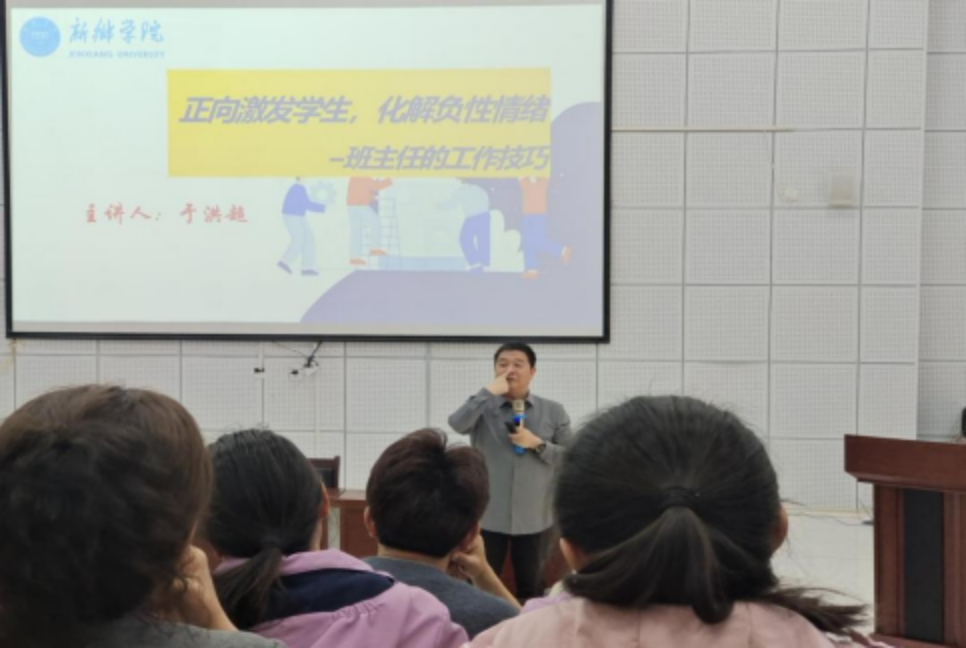 3月25日下午,于洪超老师为和田市200多名教师做了题为《正向激发学生、化解负性情绪》的专题讲座,教给老师们使用焦点解决的技术来处理教学中的困难,又和老师们分享了恰当沟通的艺术。与会老师纷纷表示很有收获,对自己的教学工作有很大帮助。