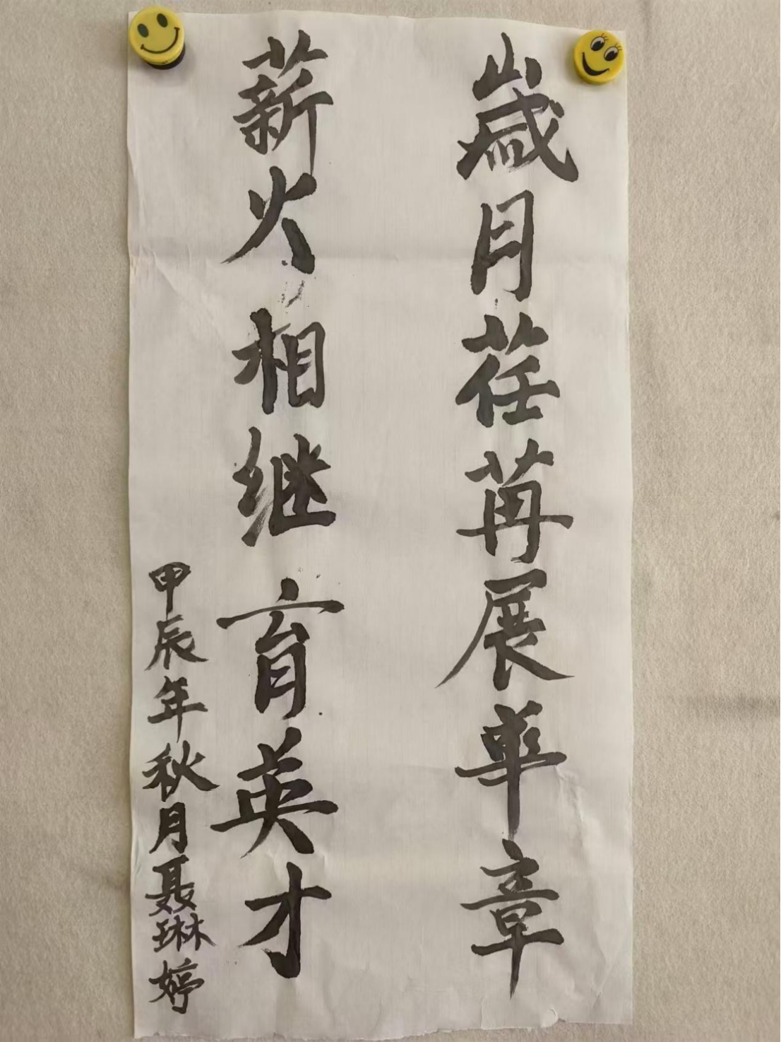 再加1张书法作品照片和1-2张教研室老师指导学生制作的照片。